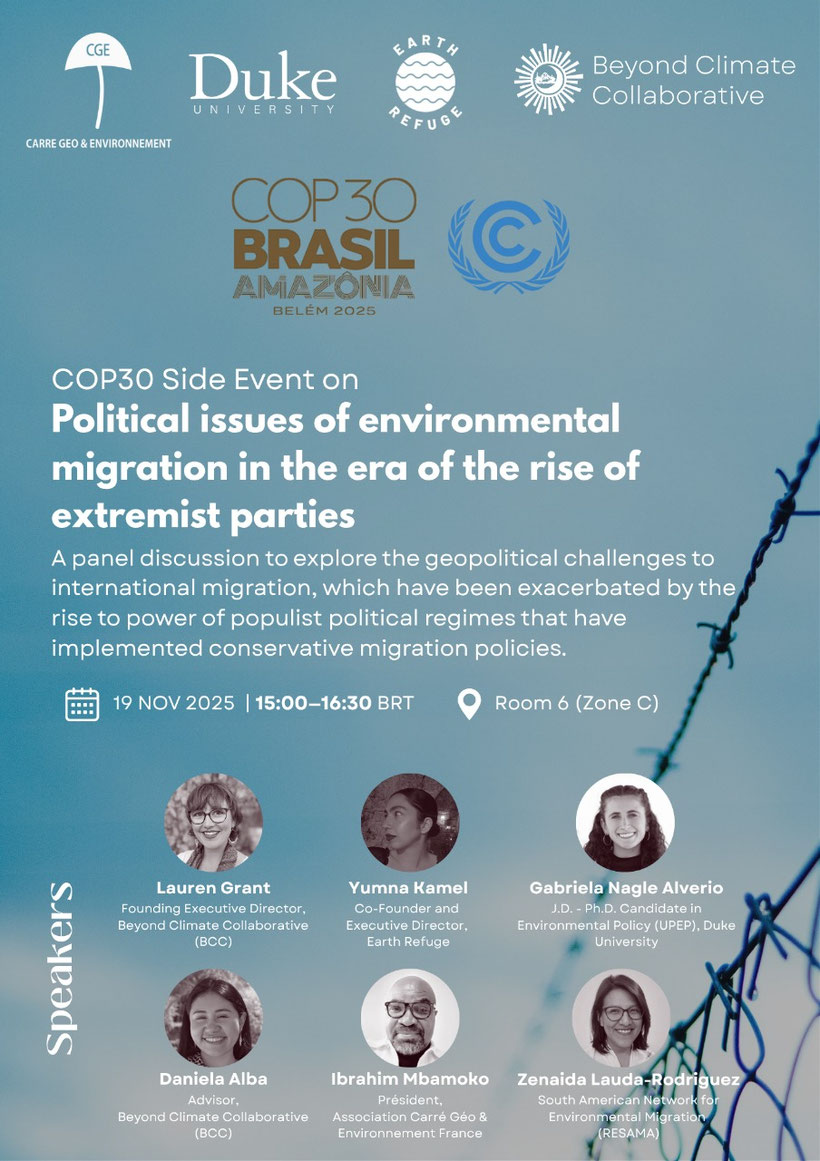 In 2019, Carré Géo & Environnement, within the framework of its advocacy efforts for the establishment of a legally binding instrument dedicated to the protection of environmental and climate-displaced persons, convened a side event during COP25. This initiative sought to lay the groundwork for a comprehensive, multi-stakeholder strategy addressing the governance and protection challenges associated with climate-induced displacement.